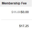 | Multiple memberships purchased on the same checkout will appear as a strikeout on the lower membership fee. | Multiple memberships purchased across checkouts will appear as an adjustment under the "Products" heading. |