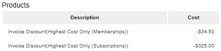 The invoice will lump all discounts into one line. If you wish to view the details of the discount, refer to the Invoices Detailed report.