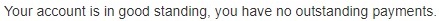 This will provide a preview of any currently outstanding invoices. Depending on the payment status of the invoices, the administrator account will be in one of the three status: good standing, outstanding or overdue.